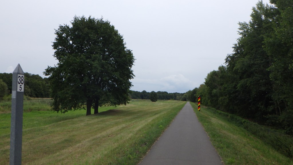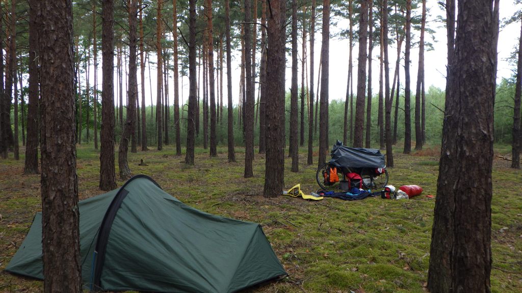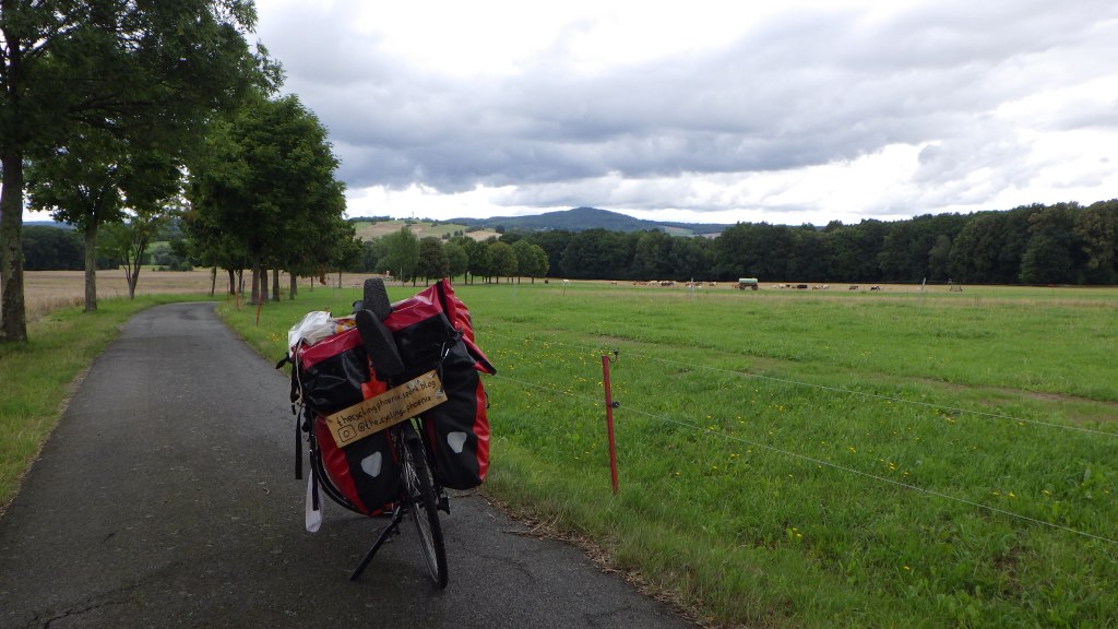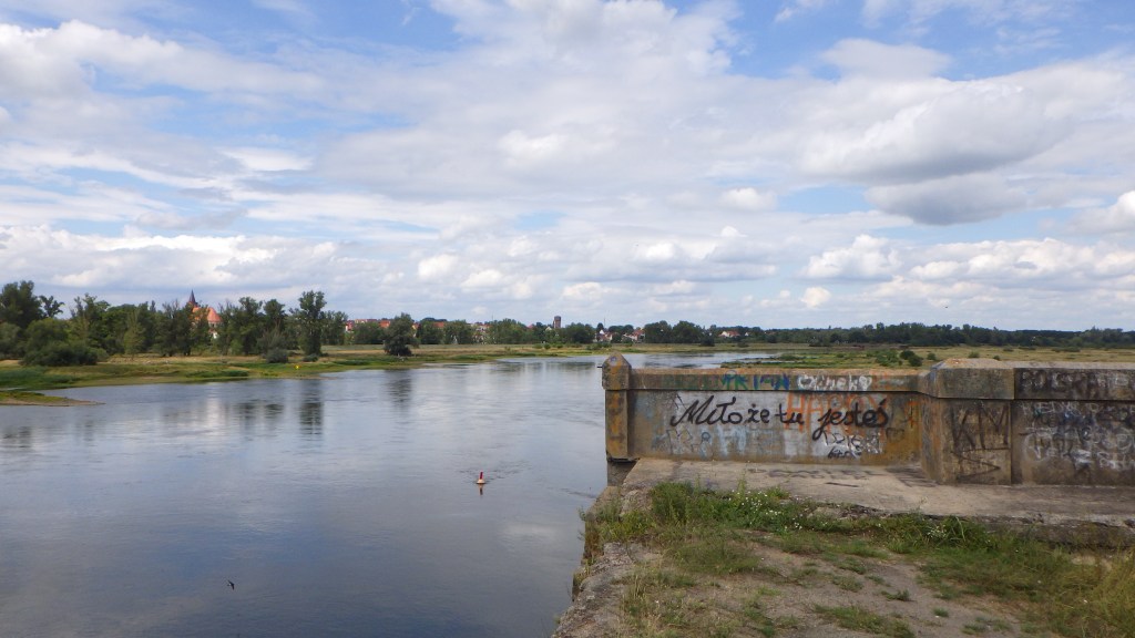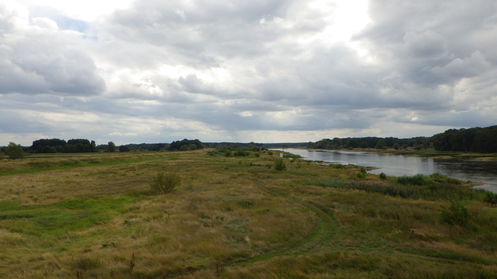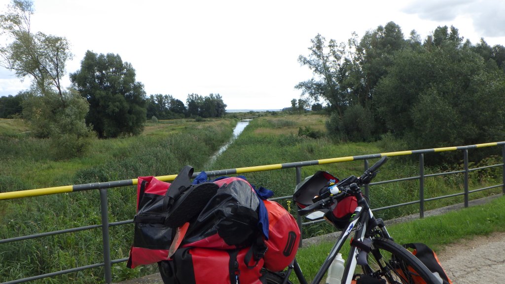 Ich bin dann mit dem Zug nach Frankfurt gefahren und von da aus über die Grenze nach Polen und den Oder/Neiße radweg Richtung Süden. Mein Fahrrad Ständer ist mit einem lautem knacken kaputt gegangen. Ich habe mich gewundert dass der überhaupt so lange gehalten hat bei dem ganzen Gewicht. Bei der nächsten Stadt habe ich an einem fahrradladen angehalten. Die Polen hatten aber keinen passenden da, weil das wohl eine typisch deutsche Konstruktion ist. Einer hat mich dann aber mit dem Fahrrad schnell über die Grenze begleitet zum nächsten Laden, so dass ich nicht umständlich suchen musste. Sehr lieb! Da die Strecke auf polnischer Seite ziemlich dünn besiedelt und die Straßen schlecht waren bin ich dann auf deutscher Seite weiter gefahren.